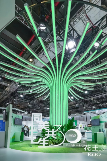 本屆進博會上,花王向世界展示“同美共生”的美好愿景,并在現場展館的搭建上別具新意,打造了象征世界萬物和諧和持久生命力的“同美共生之樹”,全方位、多角度、立體化展示花王基于ESG視點不斷展開的實踐活動。在展區設置上,圍繞“同美共生”愿景體系下三大重點領域——“和美自然”、“予美生活”、“創美未來”,分別呈現花王在多領域持續推進的創新舉措,為觀眾帶來充滿科技感與前瞻性的創新盛宴。